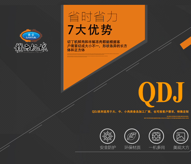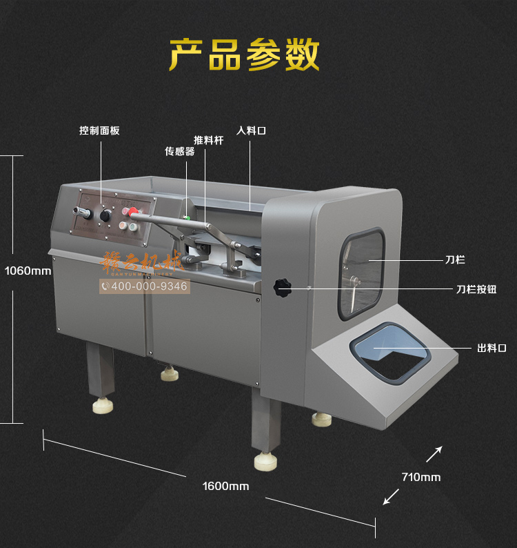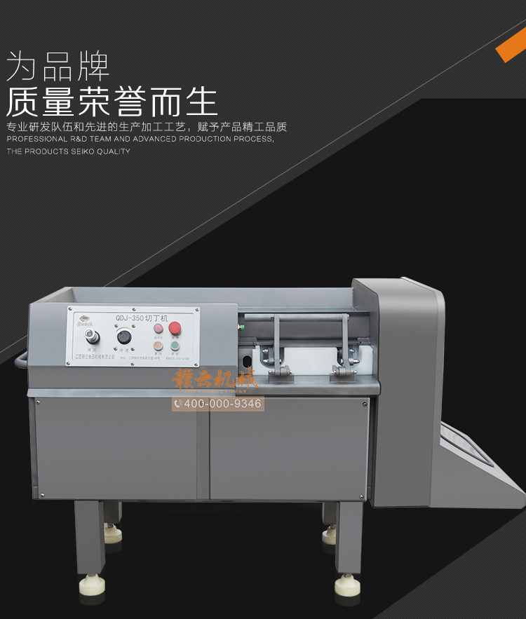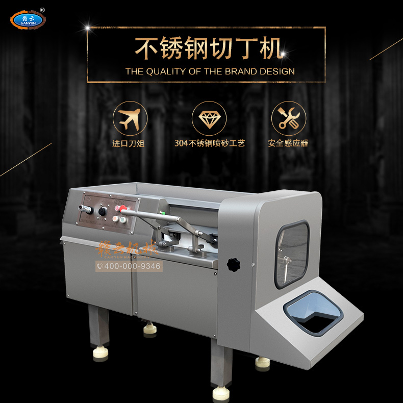 功能:该机械可用于精确切丁、丝、片、条,可用于切半解冻肉、鲜肉、熟肉及带骨的禽类产品,能将-4到4摄氏度的鸡鸭鱼等- -次切成(丁)块。