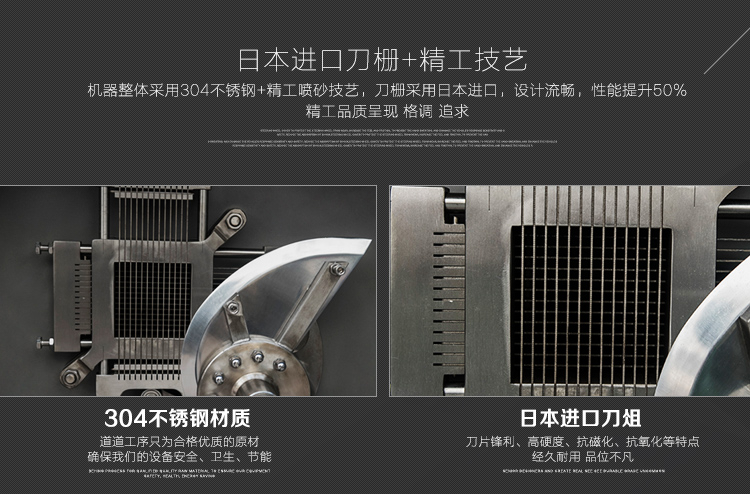 8.进口的刀组,采用特殊工艺处理,不生锈,硬度高,平整度高,经久耐用。