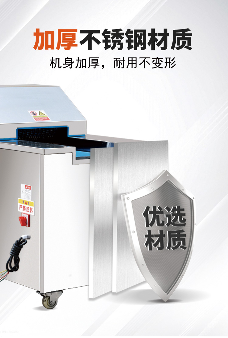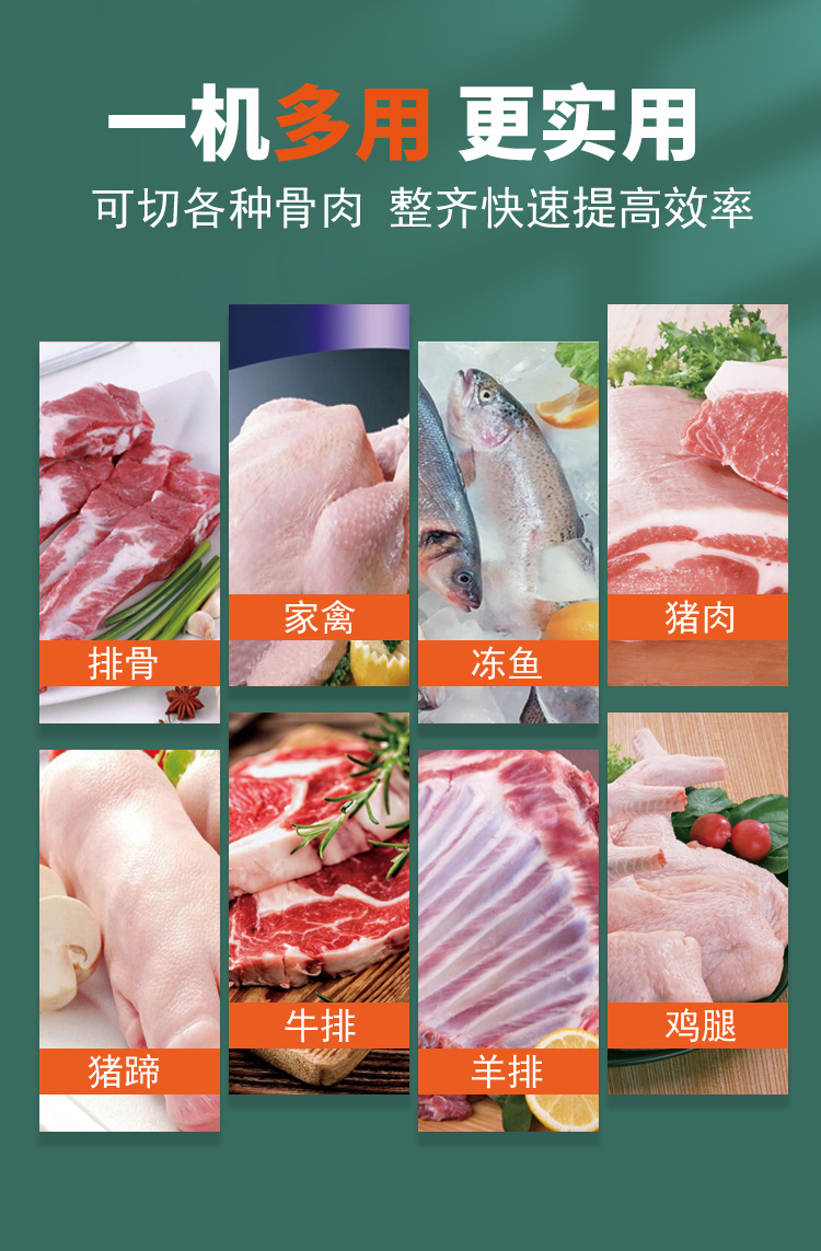 6.功能:该机械可切冻肉/冻骨/冻鱼等较硬肉质品,还可以切断新鲜的带肉骨头鲜肉、家禽