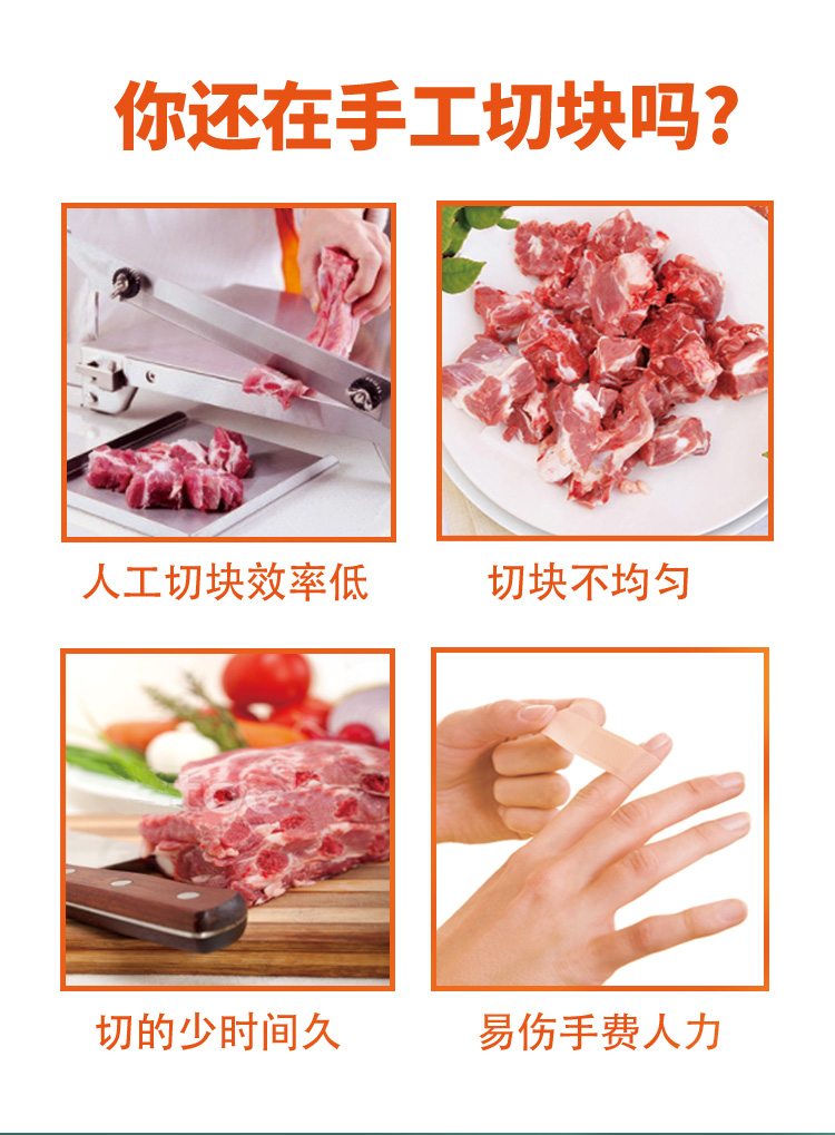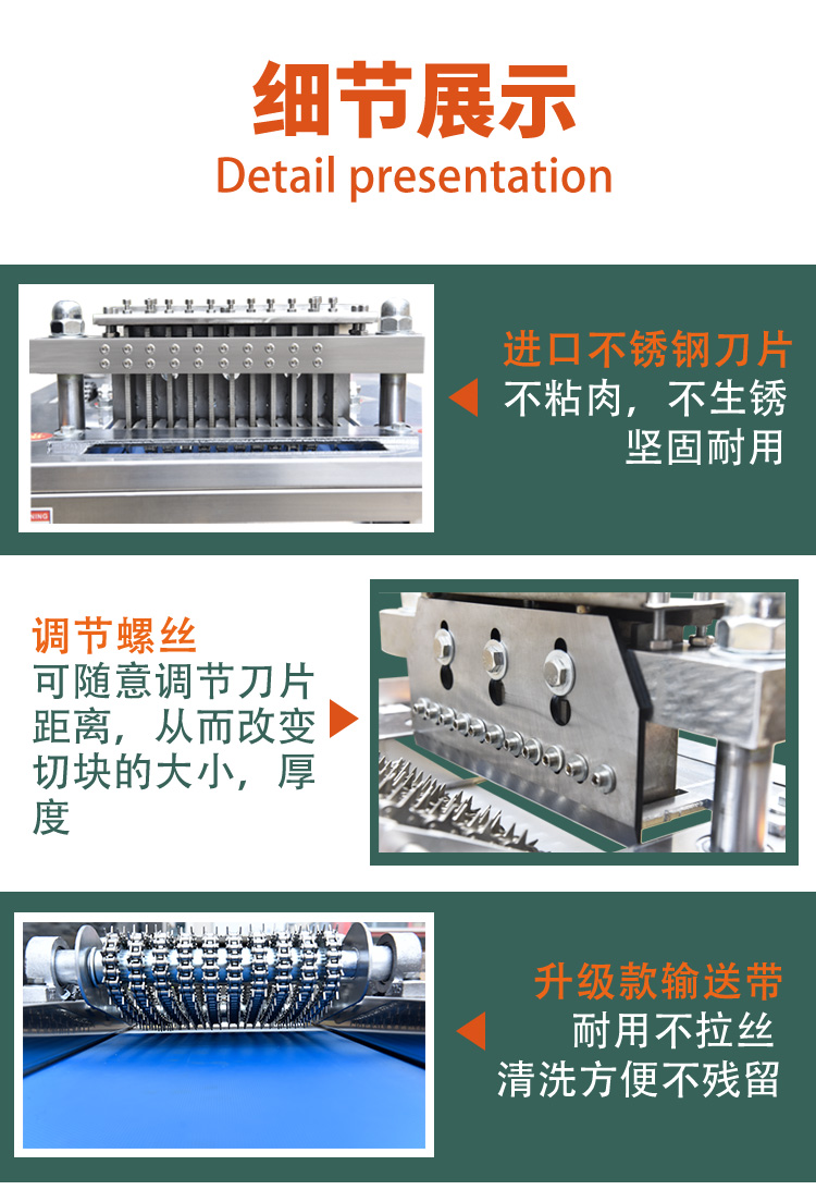 一款经济实惠的全自动冻肉切块机,可以切微冻肉无需完全解冻直接切块,切鸡块,鸭块,鱼块,牛皮片,切排骨等等。