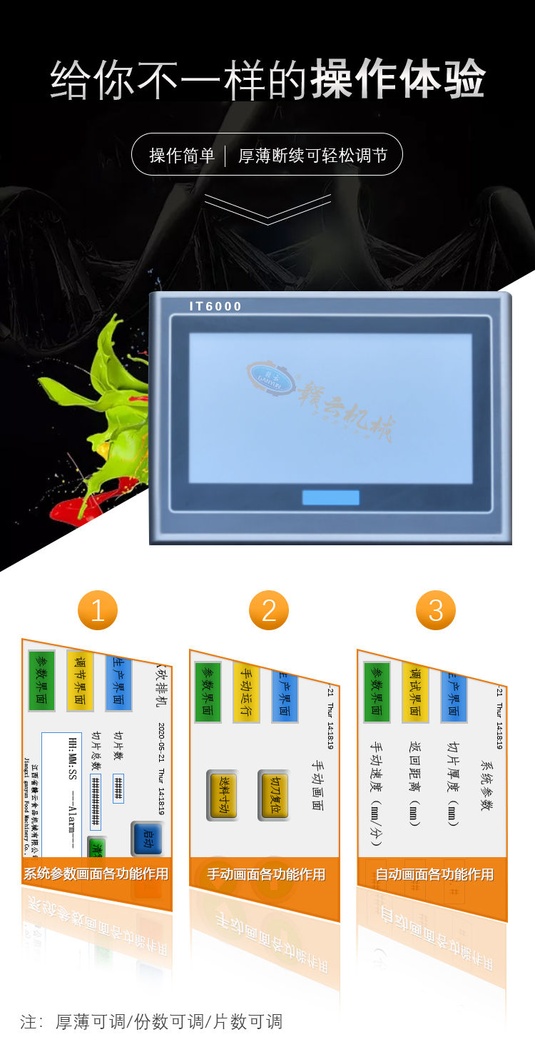 (3)可依不同物料需求切制不同规格,通过调整控制面板上的按钮设定所需规格来实现。