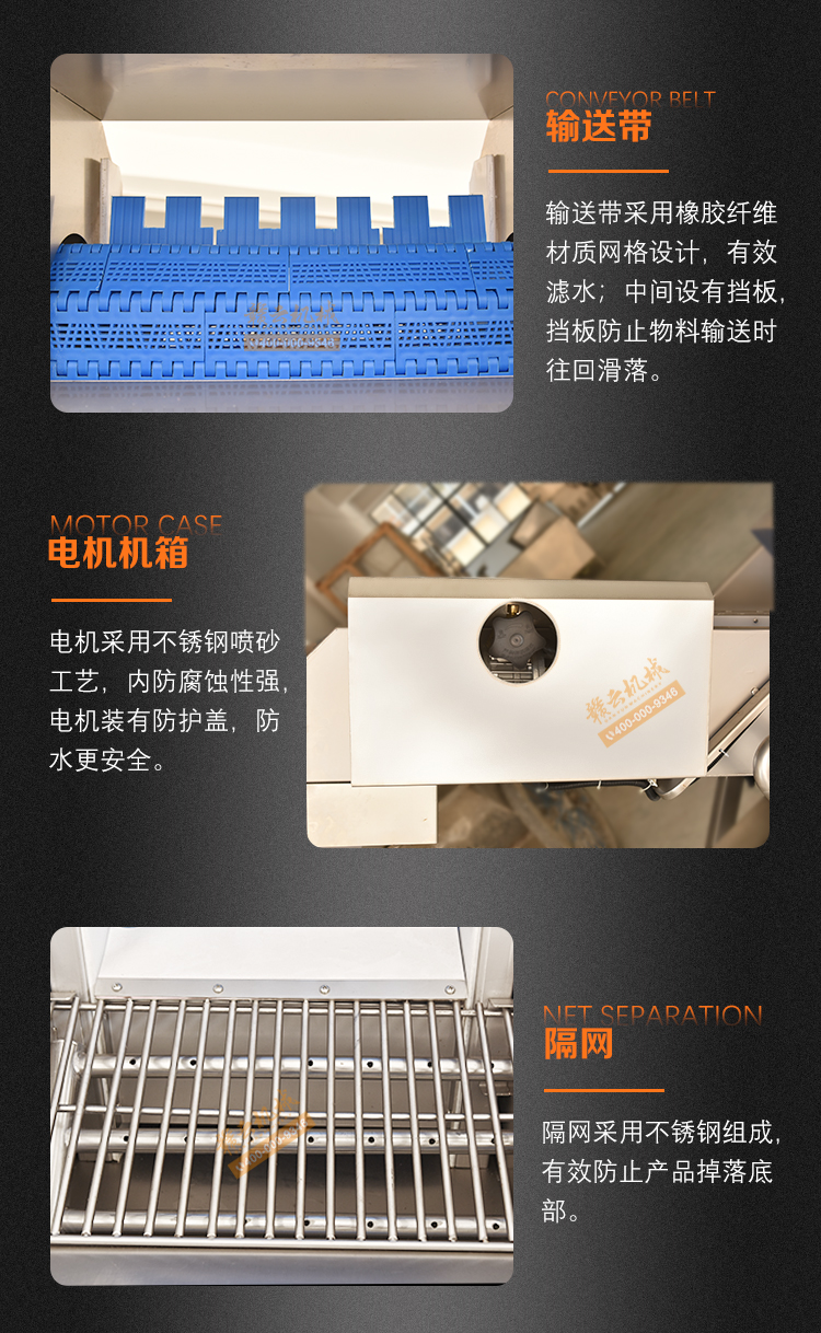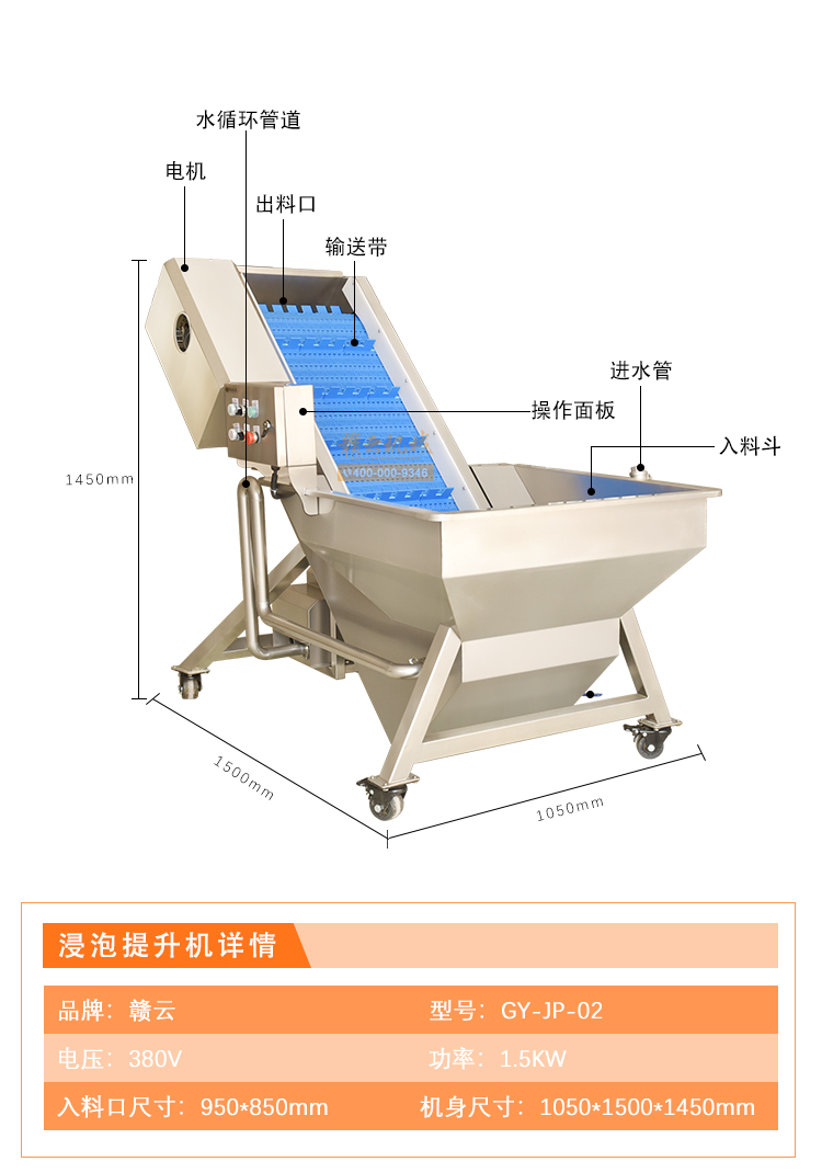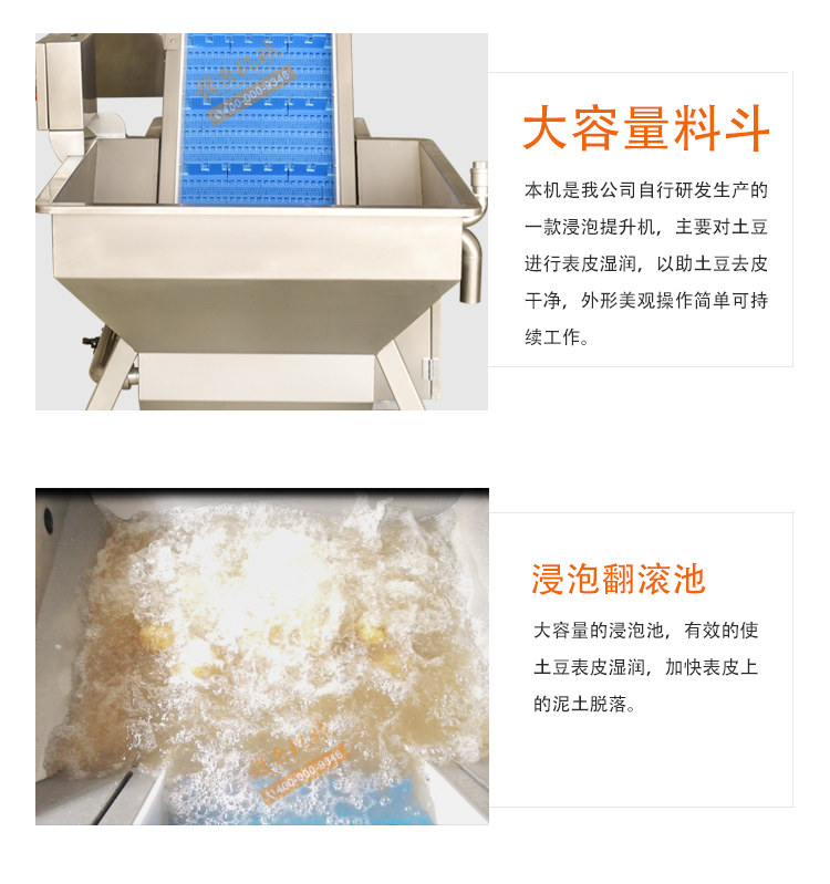 预泡提升机是用于物料的浸泡与提升输送。结构设计合理,投料方便,投料斗中加装气泡。输送带可选用不锈钢网带或PP材质带,变频器调节速度,机身由304不锈钢制作。将物料放入料斗内,物料水中浸泡,经气泡推送到输送带提升输送到下一道工序,适合生产线配套使用。机械输送稳定,简单易用。机械可根据客户需求定制,如速度、尺寸、材质等。